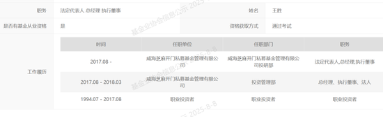 此外还有一家私募踩雷,它就是威海本地的威海芝麻开门私募基金管理有限公司,这家私募管理规模0-5亿,实控人王胜是一名职业投资者。目前改私募通过一号和二号基金分别持股403万股,目前价值1800万。